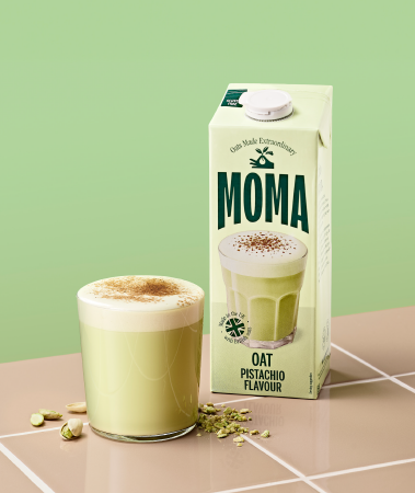 MOMA Pistachio Oat Drink ist ein pflanzliches Hafergetränk mit natürlichem Pistazienaroma, das speziell dafür entwickelt wurde, um mit Matcha ein harmonisches Ganzes zu bilden. Seine cremige Konsistenz und das ausgewogene Geschmacksprofil unterstreichen die feine Bitterkeit und das Umami von Matcha, ohne dessen Charakter zu überdecken. Das Getränk lässt sich hervorragend aufschäumen und bildet einen glatten, stabilen Schaum. Dadurch eignet es sich perfekt für Matcha Latte, Iced Matcha und Barista-Style-Getränke. Die dezente Pistaziennote verleiht den Getränken einen neuartigen, leicht dessertartigen Akzent und bewahrt zugleich ihre Leichtigkeit und Natürlichkeit. Das Produkt ist zu 100 Prozent pflanzlich, von Natur aus laktosefrei und glutenfrei. Es eignet sich sowohl für den professionellen Einsatz in Cafés als auch für die Zubereitung zu Hause.