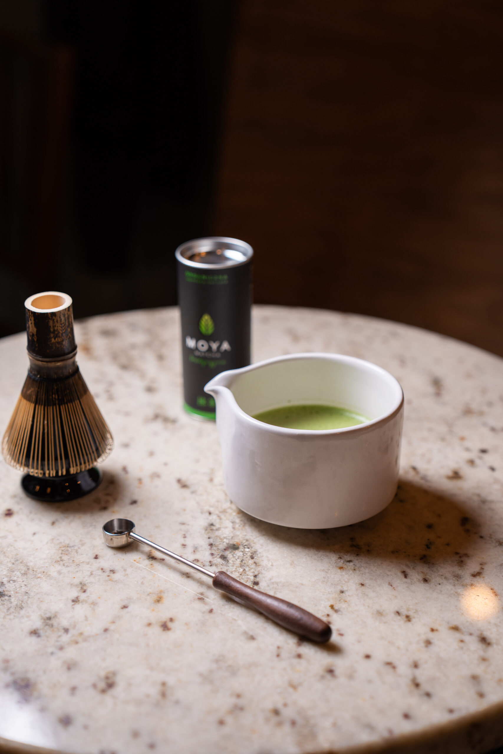 Die Schale entstand in einer limitierten Serie KOOE für MOYA – entworfen vom Krakauer Keramikstudio KOOE. Die Erzeugnisse dieses Studios zeichnen sich nicht nur durch Ästhetik, sondern auch durch ihre außergewöhnliche Haltbarkeit aus – durch das Brennen bei sehr hoher Temperatur. Der praktische Ausguss sorgt dafür, dass beim Umgießen ins Glas kein Tropfen Matcha verloren geht.