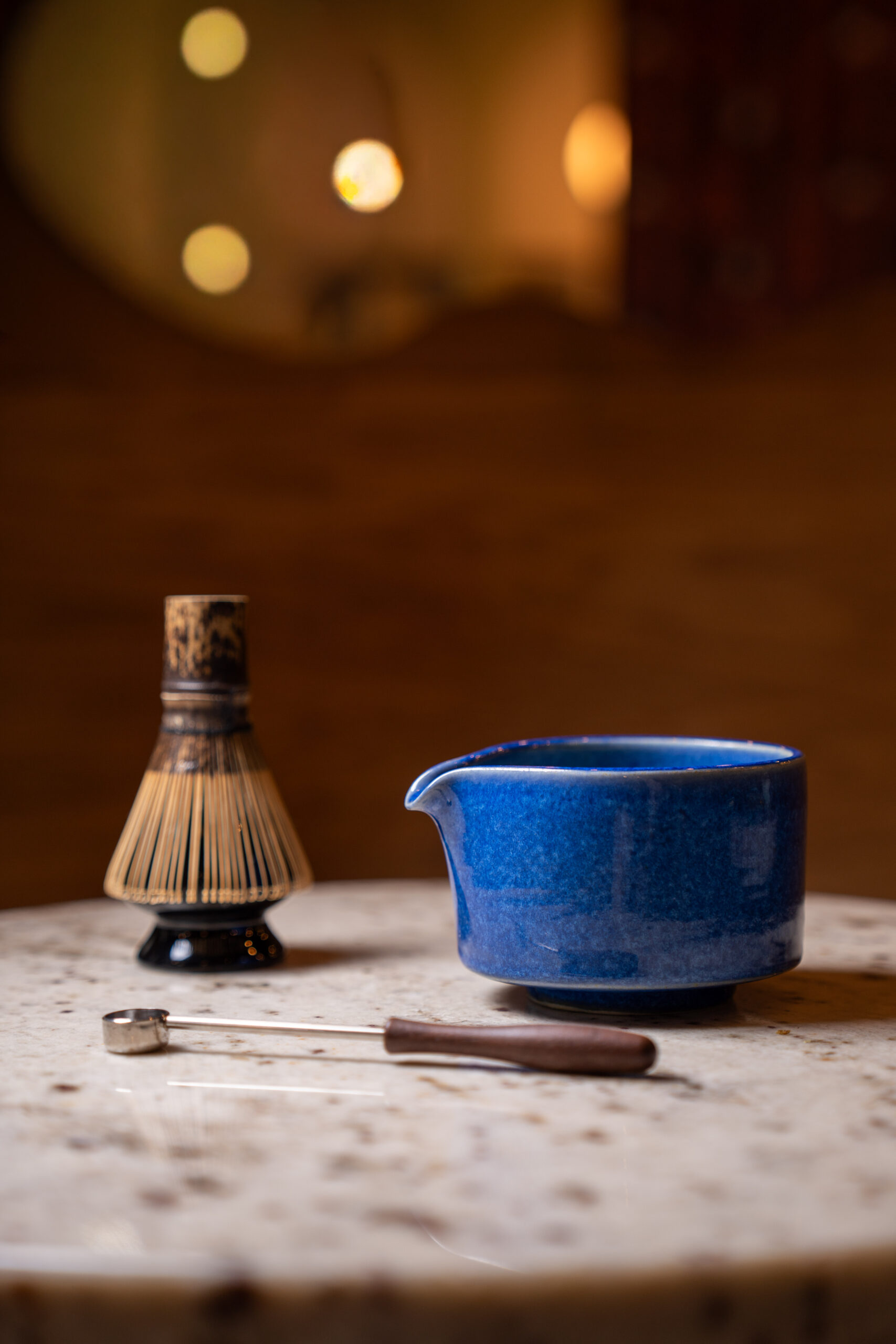 Die Schale entstand in einer limitierten Serie KOOE für MOYA – entworfen vom Krakauer Keramikstudio KOOE. Die Erzeugnisse dieses Studios zeichnen sich nicht nur durch Ästhetik, sondern auch durch ihre außergewöhnliche Haltbarkeit aus – durch das Brennen bei sehr hoher Temperatur. Der praktische Ausguss sorgt dafür, dass beim Umgießen ins Glas kein Tropfen Matcha verloren geht.