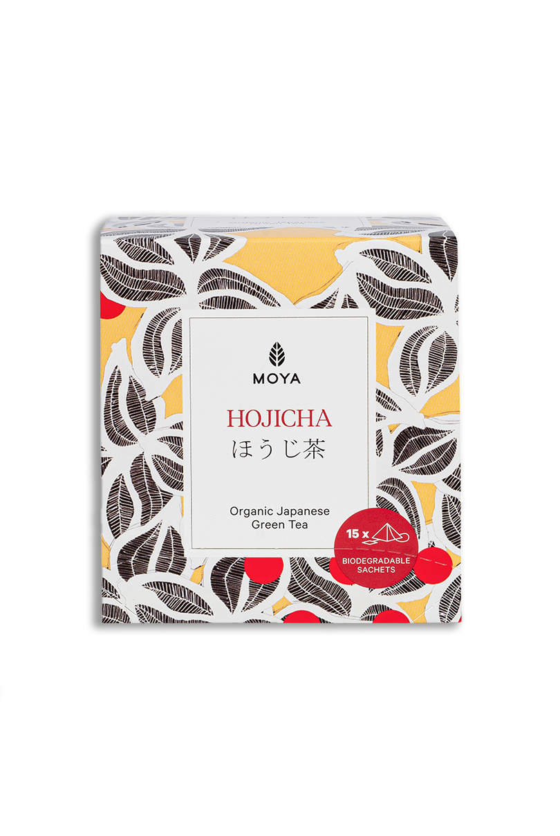 Moya Hojicha ist ein besonderer japanischer Grüntee, der durch das Rösten von Teeblättern und Stängeln bei hoher Temperatur entsteht. Durch diesen Prozess erhält er sein charakteristisches, warmes Aroma mit Noten von Nüssen, Kakao und Karamell sowie einen natürlich niedrigen Koffeingehalt. In dieser Variante ist Hojicha in biologisch abbaubaren Pyramidenbeuteln erhältlich, die den Blättern erlauben, sich frei zu entfalten und ihren tiefen, umhüllenden Geschmack voll abzugeben. Eine bequeme Zubereitungsform – ideal für Zuhause und die Arbeit.