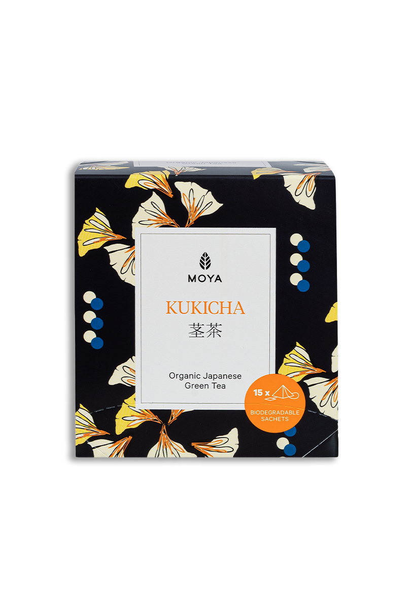 Moya Kukicha ist ein sanfter, biologischer japanischer Grüntee, der aus den Zweigen und Stängeln des Teestrauchs gewonnen wird. Er zeichnet sich durch einen hellen Aufguss, einen feinen, leicht nussigen Geschmack und einen natürlich niedrigen Koffeingehalt aus, weshalb er sich auch am Nachmittag und Abend sehr gut genießen lässt.