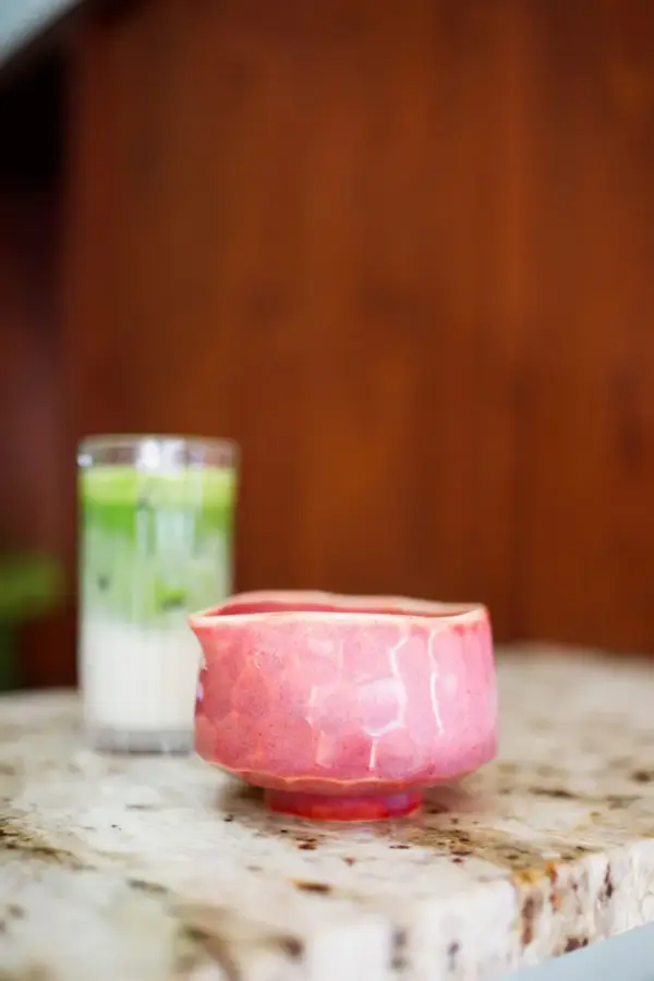 Ihre unregelmäßigen Wände sorgen dafür, dass sie perfekt in der Hand liegt. Die intensive Farbe der Tasse fällt ins Auge, und der Ausguss verhindert, dass Sie den Matcha beim Einfüllen ins Glas verschütten. Die rosa Farbe des Gefäßes hat uns dazu inspiriert, ihm den Namen „Botan“ zu geben, was auf Japanisch Pfingstrose bedeutet. In der japanischen Kultur haben die Schönheit, Eleganz und Widerstandsfähigkeit der Pfingstrose ihr den Titel der Königin der Blumen eingebracht. Im Japan des 18. Jahrhunderts war die Pfingstrose ein weit verbreitetes Motiv im Kunsthandwerk und wurde häufig als dekoratives Element in Wandteppichen, Gemälden, Keramiken und Kimonos verwendet. Sie wird häufig für Ikebana, die japanische Kunst des Blumensteckens, verwendet.